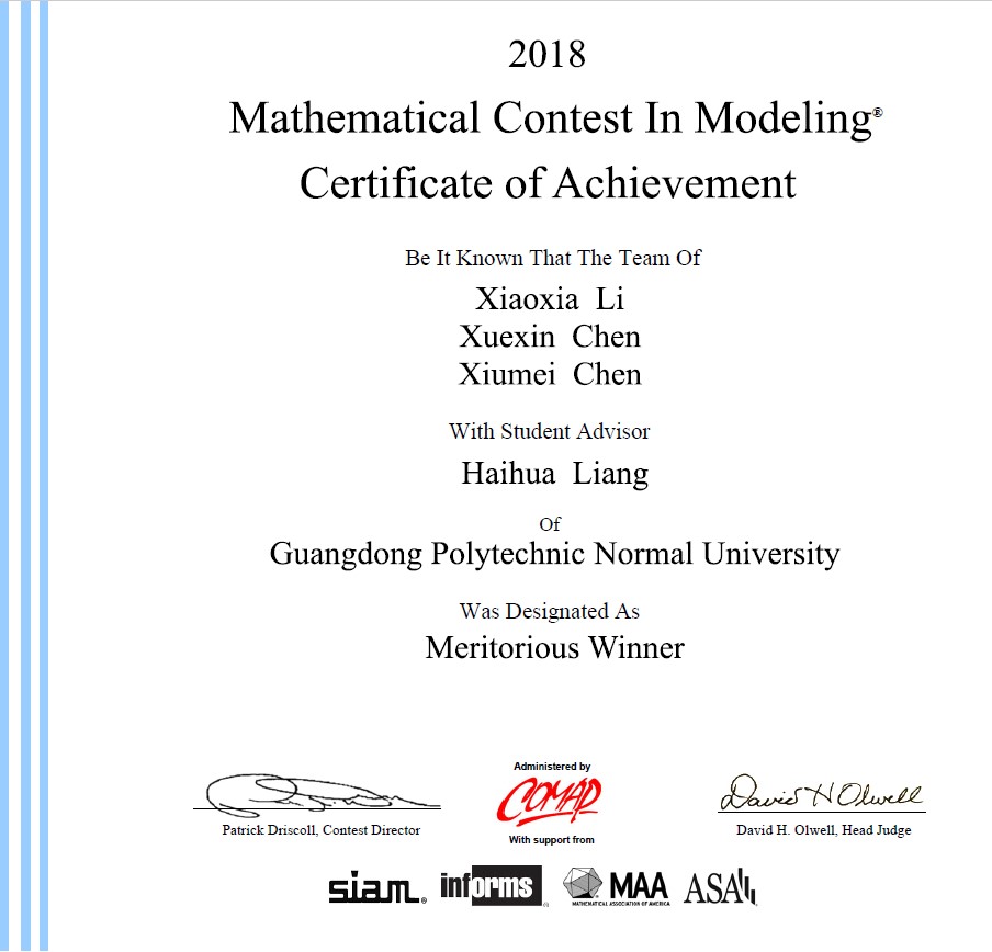 我院组织学子参加2018美国大学生数模竞赛获两项国际一等奖