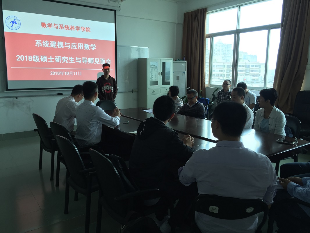 2018年10月11日,多多28在本部第一教学楼1211室,举行2018级系统建模与应用数学硕士研究生与导师见面会。