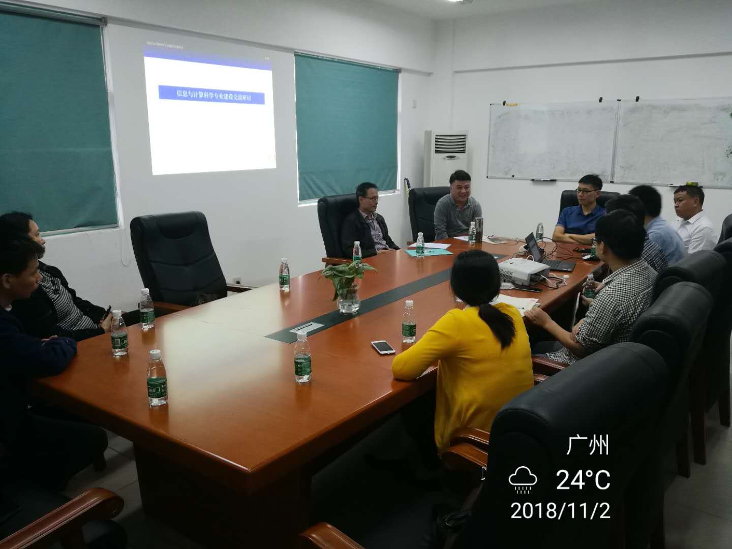 2018年11月2日,在我院信息与计算科学系(以下简称信计系)朱志强主任的带领下,信计系多名骨干教师到广东工业大学与该校的信计系教师交流经验。广东工业大学工信计系的乔守红教授主持了会议,双方就信计专业的培养方式、专业建设等问题开展交流和探讨。双方分享了各自在人才培养、专业建设方面积累的宝贵经验,共同探讨了信计专业未来的发展思路。