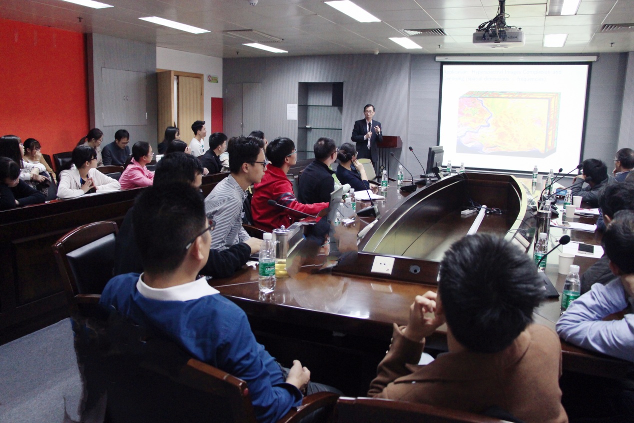 2018年11月23日下午14:30—15:30,香港浸会大学吴国宝(Michael Ng)教授应多多28邀请,在校本部工业中心605为莅临讲座的师生做精彩学术报告。报告题目为“Robust Tensor Completion and Its Applications”,吴教授介绍了利用t-SVD(tubal singular value decomposition)方法进行稳健的张量分解的成果,并讨论了该方法的应用场景,如图像补全、去噪等。慕名前来听报告的师生济济一堂,临时增加了座位。