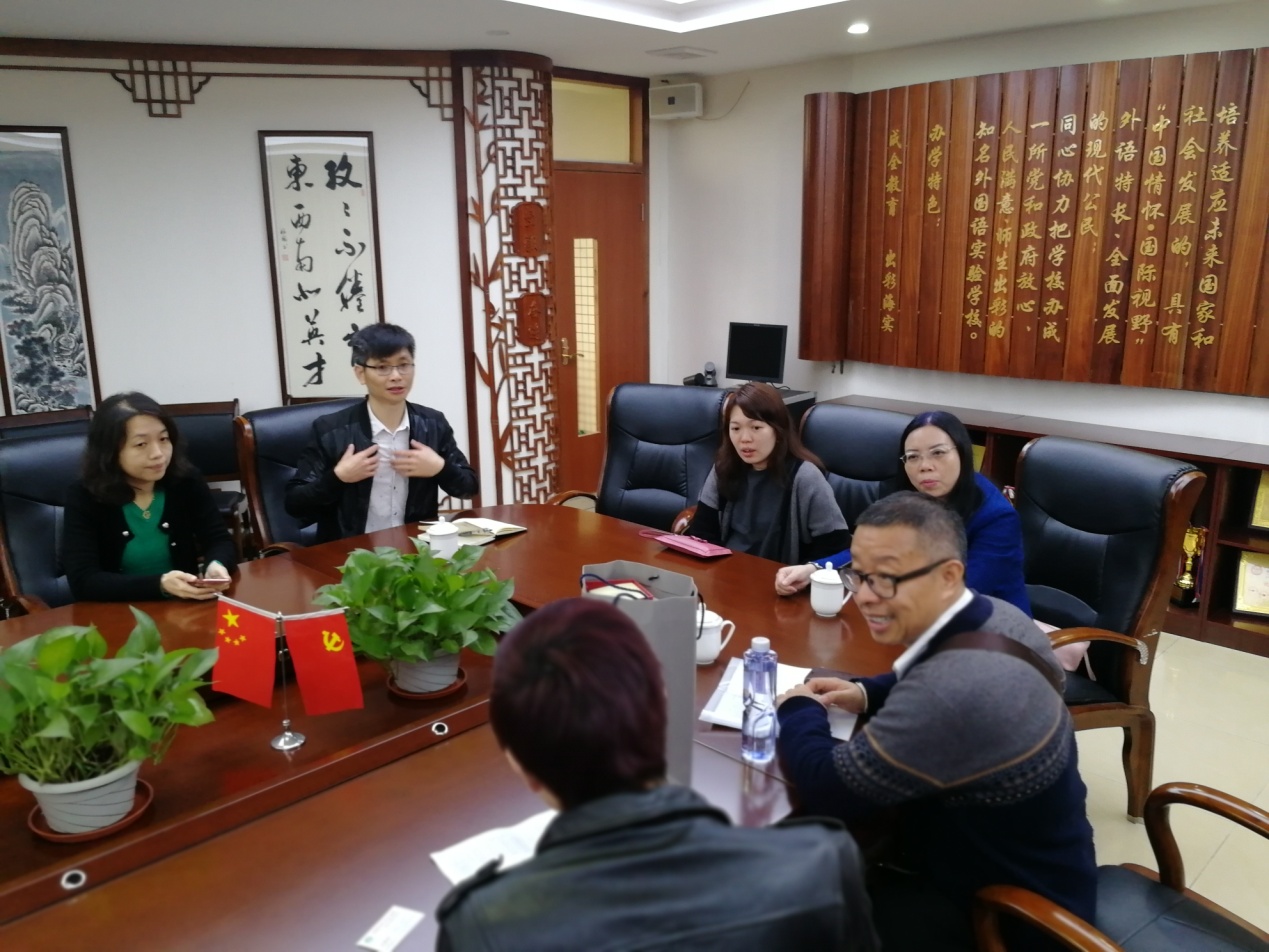 2019年3月5日上午,我院梁海华院长与数学与应用数学系主任肖黎明教授到广州市海珠外国语实验中学,与校方洽谈安排16数师学生到该校见习听课事宜。外国语实验中学梁艳琼校长,主管教学的徐瑛洁副校长,以及主管教务的赖君健主任,数学科周小华科长及数学教师邱水金老师参加了会谈。双方就我校数师专业16级学生到该校见习听课六周的事宜进行了详细的讨论并作了周密的安排。