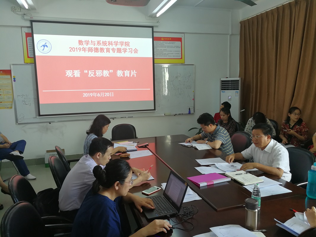 为加强师德和法制教育,2019年6月20日下午,在校本部1211室,多多28召开全体教职工会议,组织观看了“反邪教”警示教育片。