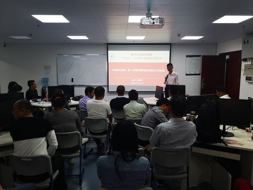 根据“不忘初心、牢记使命”主题教育安排,2019年10月31日下午,在东校区工业506室,学院院长梁海华以《牢记初心使命,进一步提升数科院本科教学工作成效》为题,给党员和教师开讲了党课。