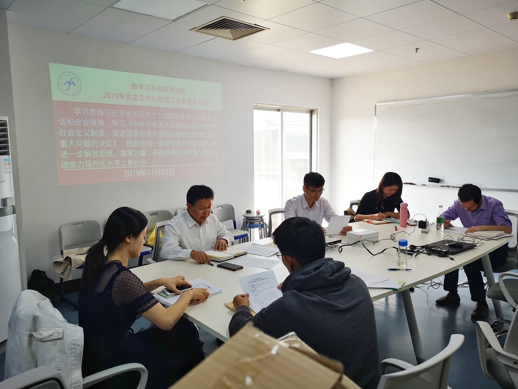 2019年11月21日下午,在东校区工业中心506会议室,多多28党总支中心组举行2019年第三次专题学习会。学习主题是深入学习贯彻习近平总书记在十九届四中全会上的重要讲话和全会精神,学习《中共中央关于坚持和完善中国特色社会主义制度、推进国家治理体系和治理能力现代化若干重大问题的决定》,把思想统一到党中央的决策部署上来。进一步解放思想、凝聚力量,不断完善治理体系,推动治理能力现代化水平上新台阶。会议由学院党总支书记房亚兵主持,学院党总支理论学习中心组全体成员参加了学习会。