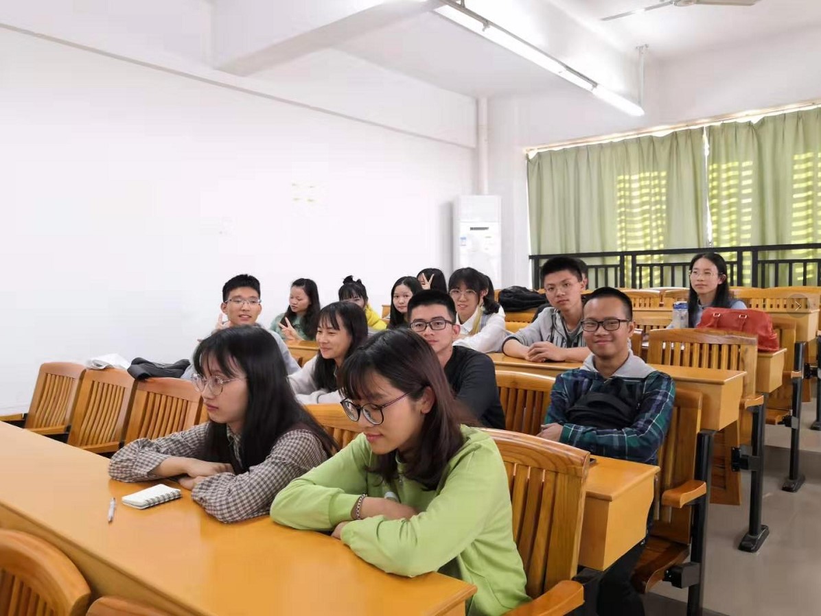 图为数学与应用数学系黄凤英主任与数师专业学生开展教学信息员座谈会