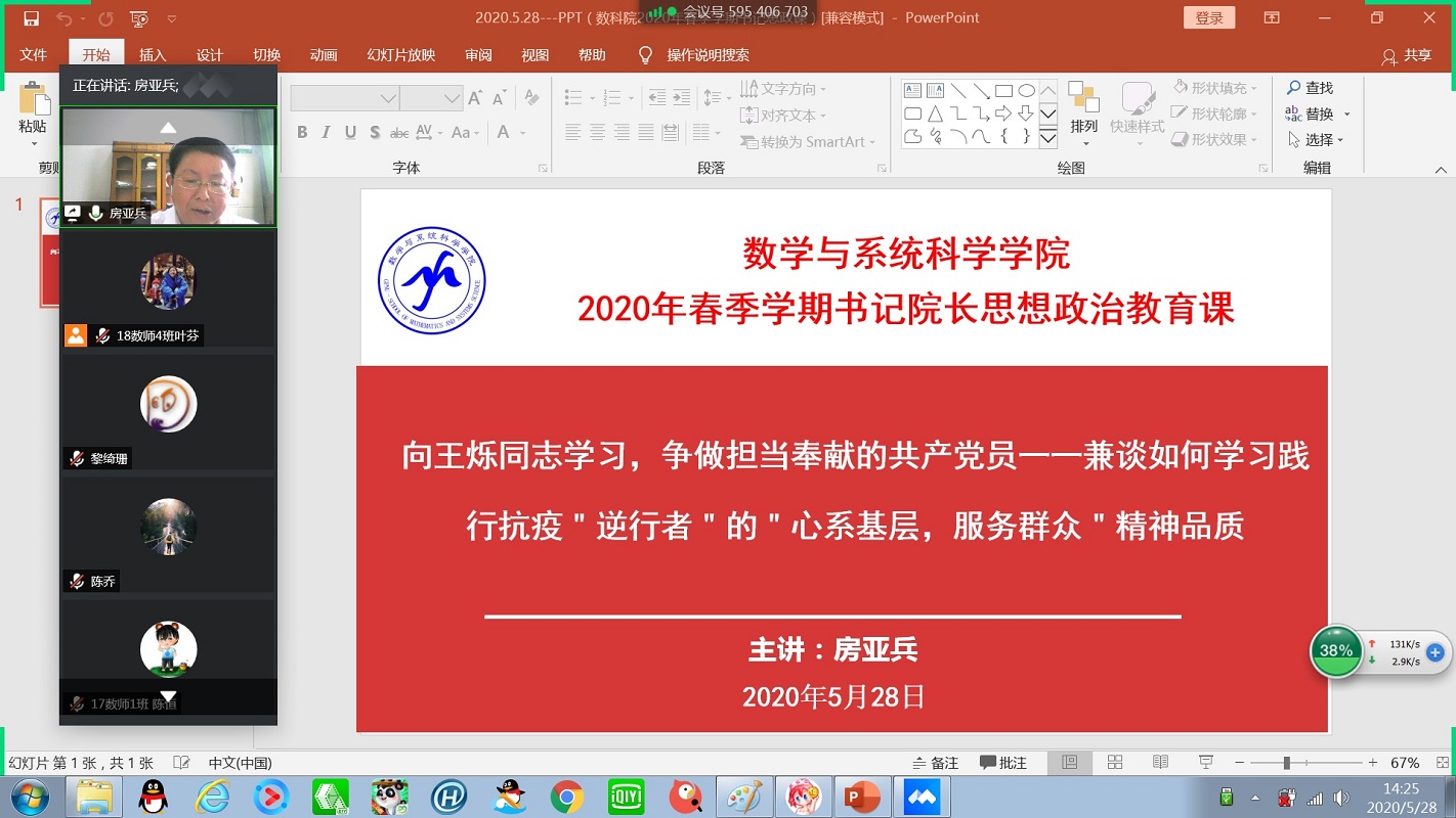 2020年5月28日下午,通过视频会议形式,举行多多282020年春季学期书记院长第一堂思想政治理论课。学院党总支副书记赵珲、辅导员王婷婷,以及全体学生党员到场聆听。