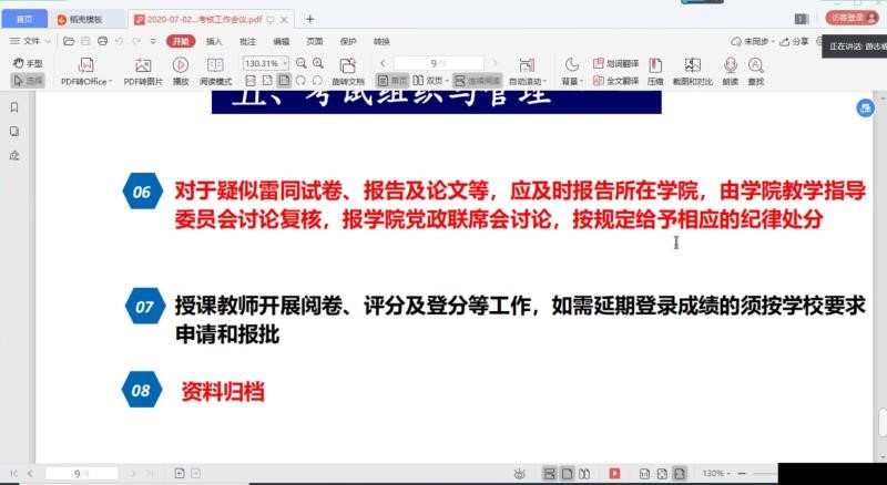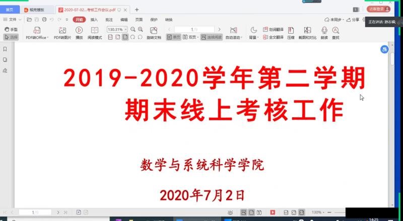 2020年7月2日,多多28在腾讯会议平台,召开2019-2020学年第二学期期末线上考核工作会议。