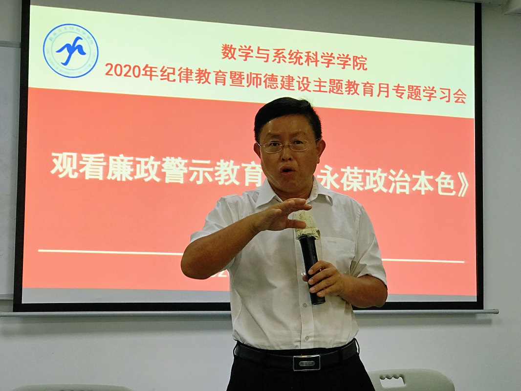 会议传达学习了学校党委《关于印发<广东技术师范大学2020年纪律教育学习月活动方案>的通知》(广师大党委〔2020〕101号)和《广东技术师范大学关于开展2020年师德建设主题教育月活动的通知》(广师大党委〔2020〕108号)精神,布置了相关工作。同时,集体观看廉政警示教育片《永葆政治本色》