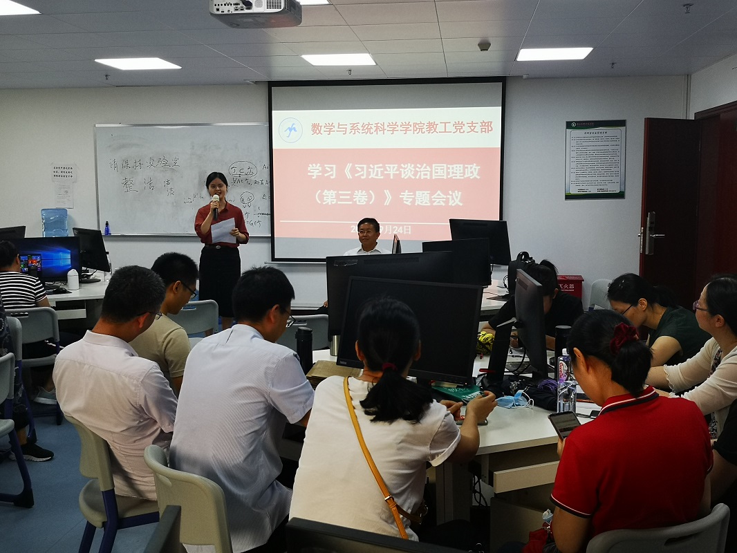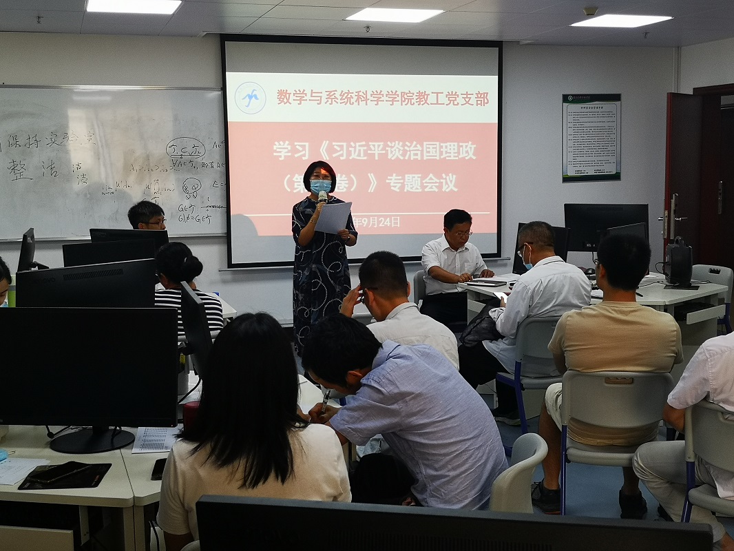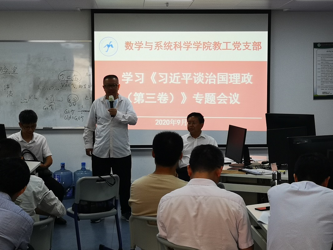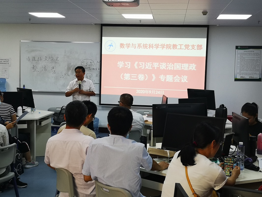 2020年9月24日,在东校区工业中心506室,教工党支部召开全体党员会议,专题学习《习近平谈治国理政》第三卷。