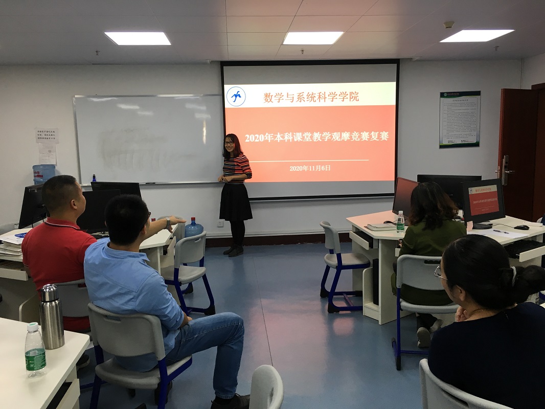 为进一步推动课堂教学改革,加强课堂教学经验交流,不断提升我院教师教学水平和本科课堂教学质量,2020年11月6日,在东校区工业中心506,我院开展教师本科课堂教学观摩赛院内复赛。蓝双婷、黄术和李振彰三位老师分别选取《高等数学》、《解析几何》和《数据结构》的相关内容进行授课。参加复赛的三位教师认真准备,讲课逻辑清楚;均结合了多媒体授课,课件的制作受到评委的好评;教师的上课语言和风范符合教师礼仪和规范,上课内容的讲解较清晰;能较好地把握教学重点、难点,所举例都较适当;能较好地回答评委的相关教学内容和设计问题。最后评委一致推荐李振彰老师参加学校的决赛。