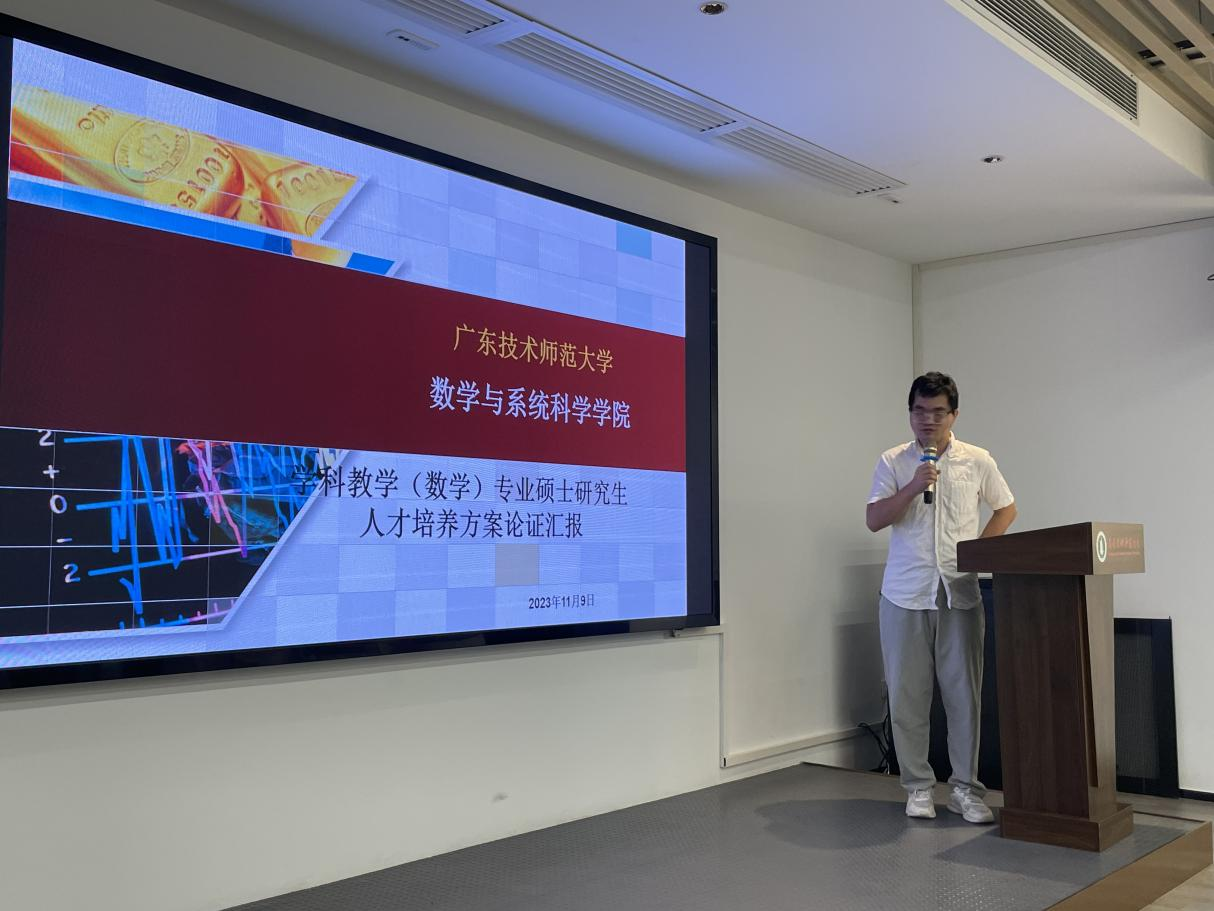 为深入贯彻《教育硕士专业学位研究生指导性培养方案(2023 年修订版)》的通知(教指委发〔2023〕06 号 )精神,落实学校关于进一步修订教育硕士专业学位研究生人才培养方案的通知,规范和提升学科教学(数学)专业方向硕士研究生的管理与培养质量,2023年11月10日,我院召开学科教学(数学)专业硕士研究生人才培养方案论证会。论证会专家组由华南师范大学苏洪雨副教授、佛山科学技术学院吴楚芬教授、广州市第一一七中学张佐言校长、南海双语实验学校黄琼副校长、黄埔军校纪念中学吴东华主任组成。学院院长梁海华、副院长陈志景、研究生导师代表及研究生学生代表出席了会议。