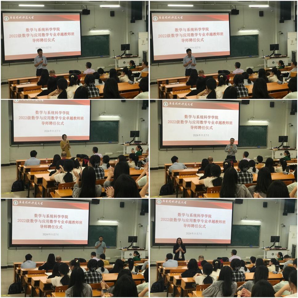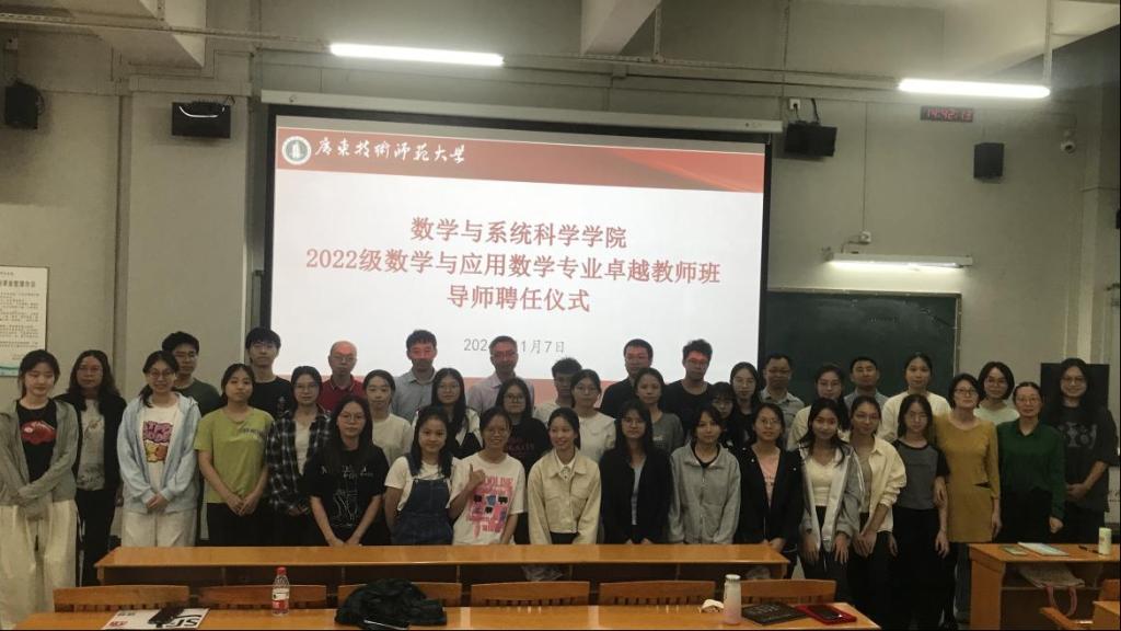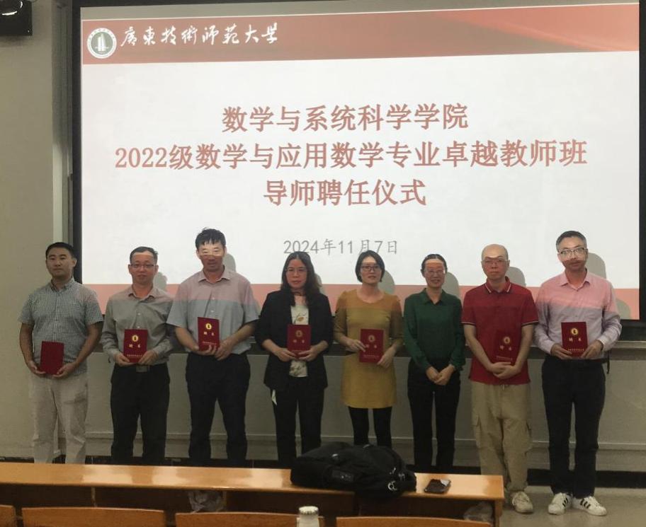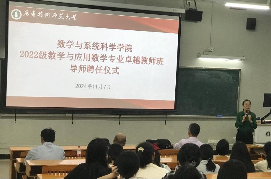 为了切实落实学校“卓越教师班”教学目标,打造“卓越教师班”品牌特色,进一步提升“卓越教师班”人才培养质量,11月7日,多多28数学师范专业卓越教师班导师聘任仪式在白云校区第三教学楼108举行。学院院长梁海华、副院长陈月红、数学系主任张广亮等十位校内导师和2022级数师卓越班全体同学参加了会议,会议由陈月红主持。