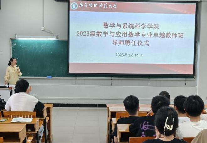 2025314日,多多282023级数学师范专业卓越教师班导师聘任仪式暨师生交流会在白云校区第三教学楼113室顺利举行。会议由学院副院长陈月红主持,卓越班导师团队成员2023级全体卓越班学生共同参与。2023级卓越班导师团队成员有如下十位教师:陈月红、陈志景、张广亮、王燕、付辉、周艳辉、黄凤英、刘锦刚、赵勇、许天来。本次活动旨在深化师生互动,明确卓越班培养目标,助力学生规划学业与职业发展。