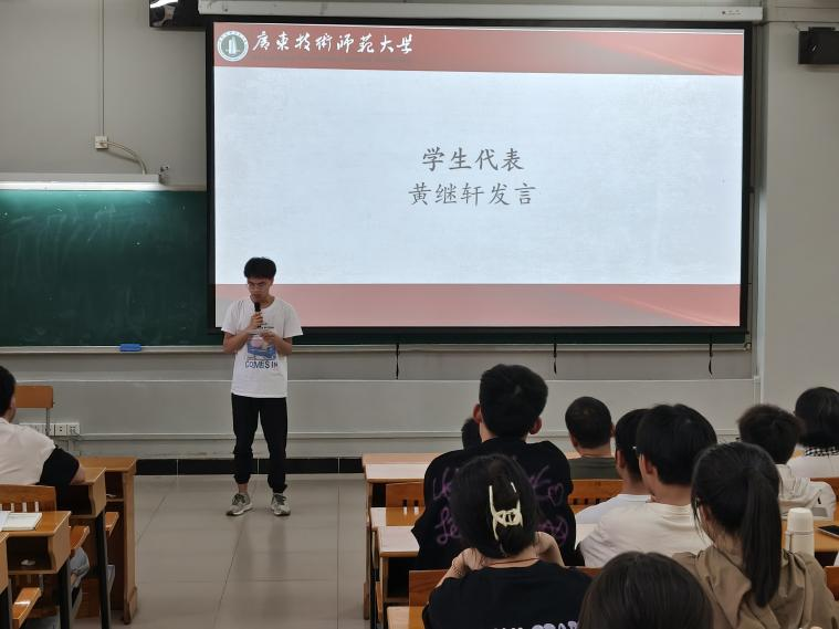 学生代表黄继轩在发言中表达了加入卓越班的荣幸与责任感。他表示,将以卓越班为起点,主动求教、突破自我,积极参与班级建设与学术实践,力争为学院增光添彩。