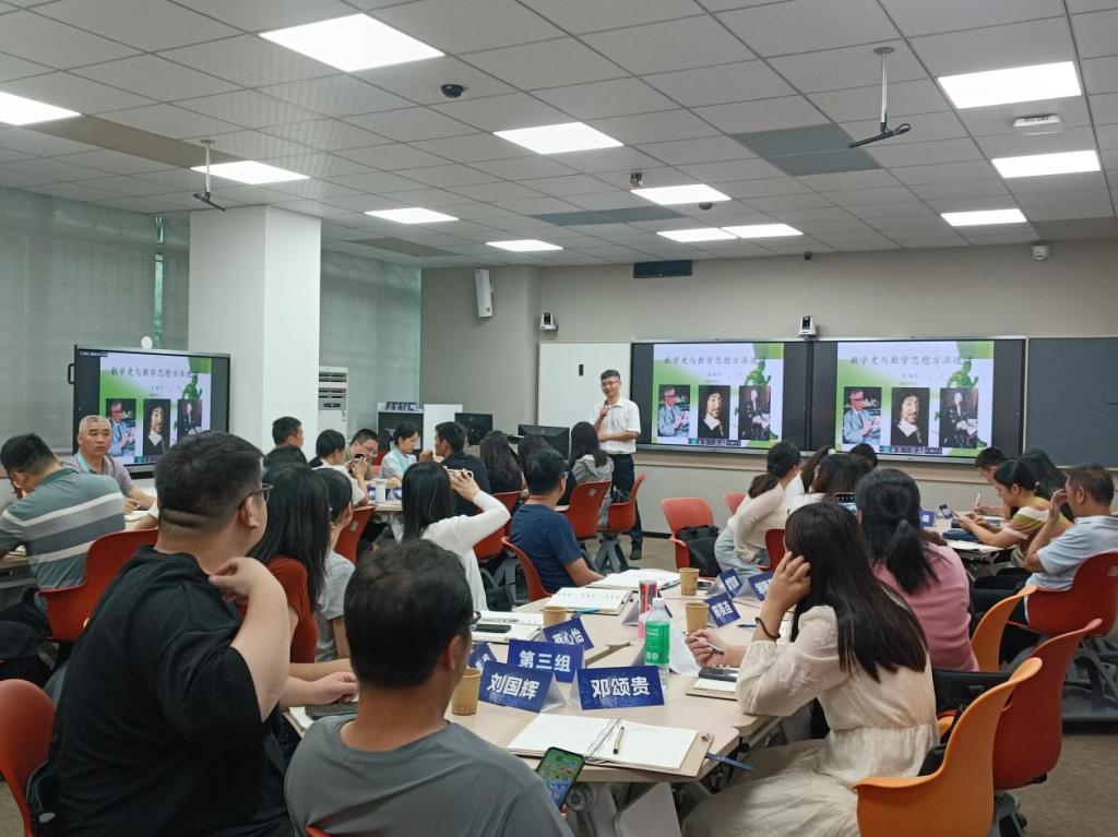 学院梁海华院长、张广亮主任、蒋经华主任,游志福老师分别做《数学史与数学思想方法》、 《AI赋能混合式教学的创新与实践》、 《AIGC赋能教育教学》, 《数学文化:让数学更有趣、更有深度》的专题讲座。