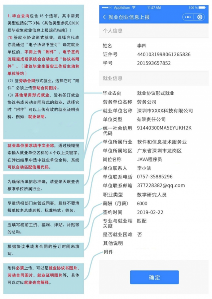 填写就业信息并提交。常规就业信息上报需要填的内容基本一致,以“签就业协议形式就业”为例,填写内容如下图所示: