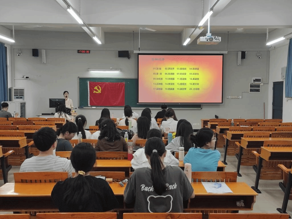多多28本科生党支部于2024年424下午17:00三教307召开“我为评估做贡献”主题党日活动暨2024年上半年拟发展党员考察对象答辩会议本科生党支部书记王婷婷、辅导员曾祥龙、刘敏、陈薇羽以及全体学生党员参加了本次会议。会议由支部书记王婷婷主持。