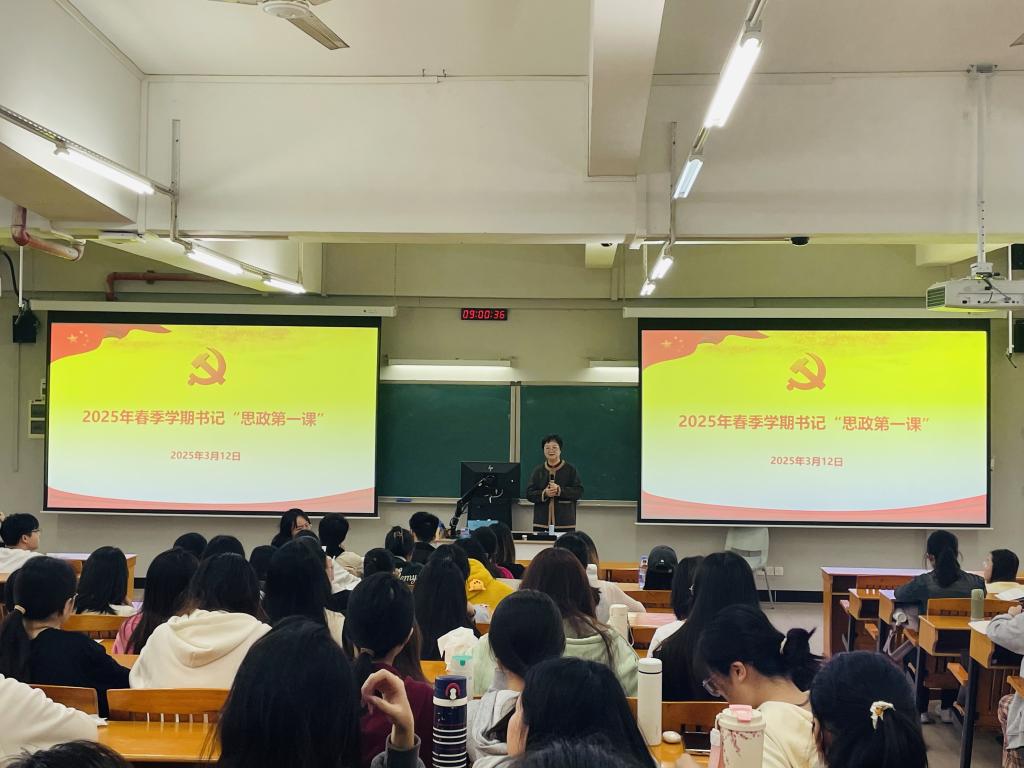 2025年3月12日上午,白雪飞书记在白云校区三教209为22级数学与应用数学(师范)专业学生讲授了新学期“思政第一课”,主题为“学习贯彻2025年广东省高质量发展大会精神,奋力书写新时代教育新篇章”。学院辅导员、学生共150余人参加了本次课程。