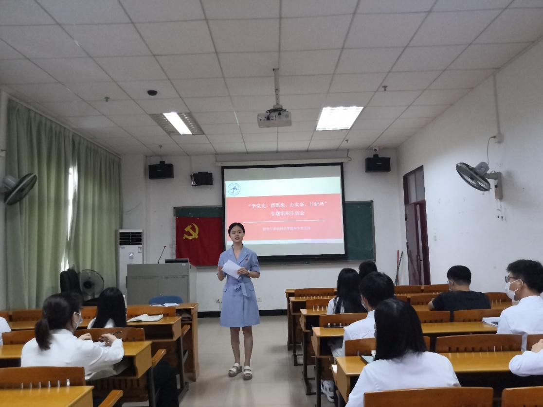 会前,支部组织党员开展集体朗读党史活动,由学生党员蓝美琴、古尚宾、张燕柠、叶芬领读了《论中国共产党历史》、《毛泽东、邓小平、江泽民、胡锦涛关于中国共产党历史论述摘编》、《习近平新时代中国特色社会主义思想学习问答》、《中国共产党简史》等学习材料的部分篇章,认真学习了习近平总书记在党史学习教育动员大会、庆祝中国共产党成立100周年大会上的重要讲话精神,深刻领悟党史学习教育的重要意义以及中国共产党成立100周年对中华民族伟大复兴事业的深远影响。