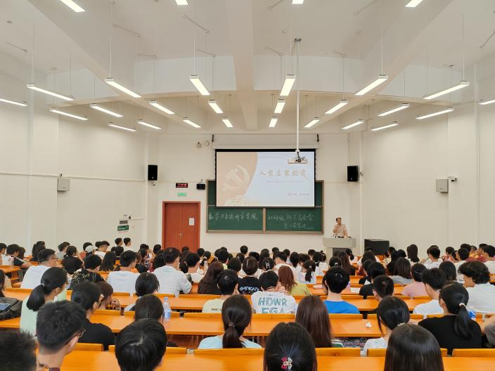 本次入党启蒙教育由本科生党支部的党员代表刘怡主讲,学院党委副书记许国良和全体2024级新生参加。入党启蒙教育为新生们提供了深入了解党的历史、理念和实践的机会。通过党史学习、党支部活动展示、入党流程讲解,让新生们对党的辉煌历程、卓越贡献和党的基础理论知识有了更加深刻的认识,进一步开启了同学们加入党组织的决心。