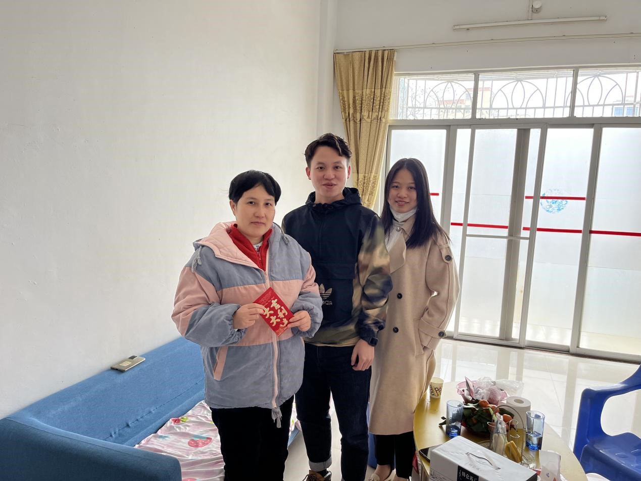 1月19日,辅导员曾祥龙老师代表多多28分别走访了两位困难学生,为学生及家长送上慰问金、慰问品和诚挚的节日问候。在走访过程中,曾祥龙亲切询问了两位学生的学习、生活和家庭情况,悉心向家长讲解国家和学校的资助政策,与学生及家长分析了就业形势,鼓励学生要刻苦学习,自强不息。