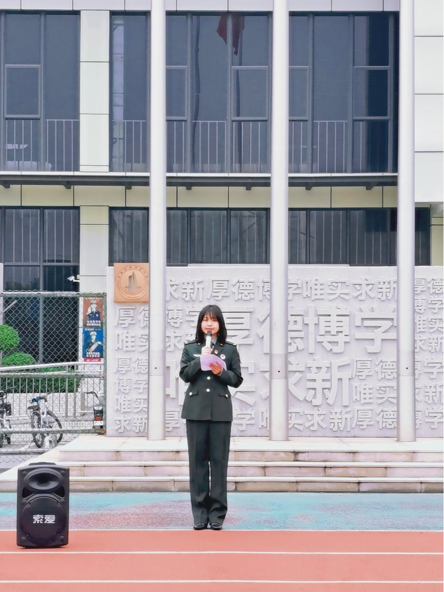 升旗仪式结束后,学生代表21数师1班叶琪发表题为《时代呼唤人才,人才铸就强国》的演讲。她表示,我们要努力提升自己,成为强国之才。每个人都应该勇于去负重、去扛起重担,不畏艰难。中华民族历史上经历过很多磨难,但从来没有被压垮过,而是愈挫愈勇,不断在磨难中成长,从磨难中奋起。我们作为华夏子孙,更应如此。作为新时代青年的我们,在当前的大形势,要大力弘扬党的二十大精神,铁心跟党走、铁肩担重任、铁拳迎强敌,在新的伟大征程上续写新的荣光。