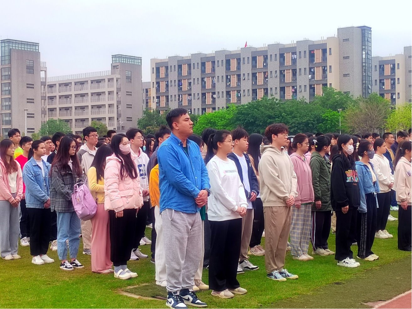 4月3日清晨,多多28举行主题为“学习党的二十大精神,勇担新时代责任”的国旗下的讲话活动。数科院亚地卡尔?买买提辅导员以及21级全体学生参加本次活动。