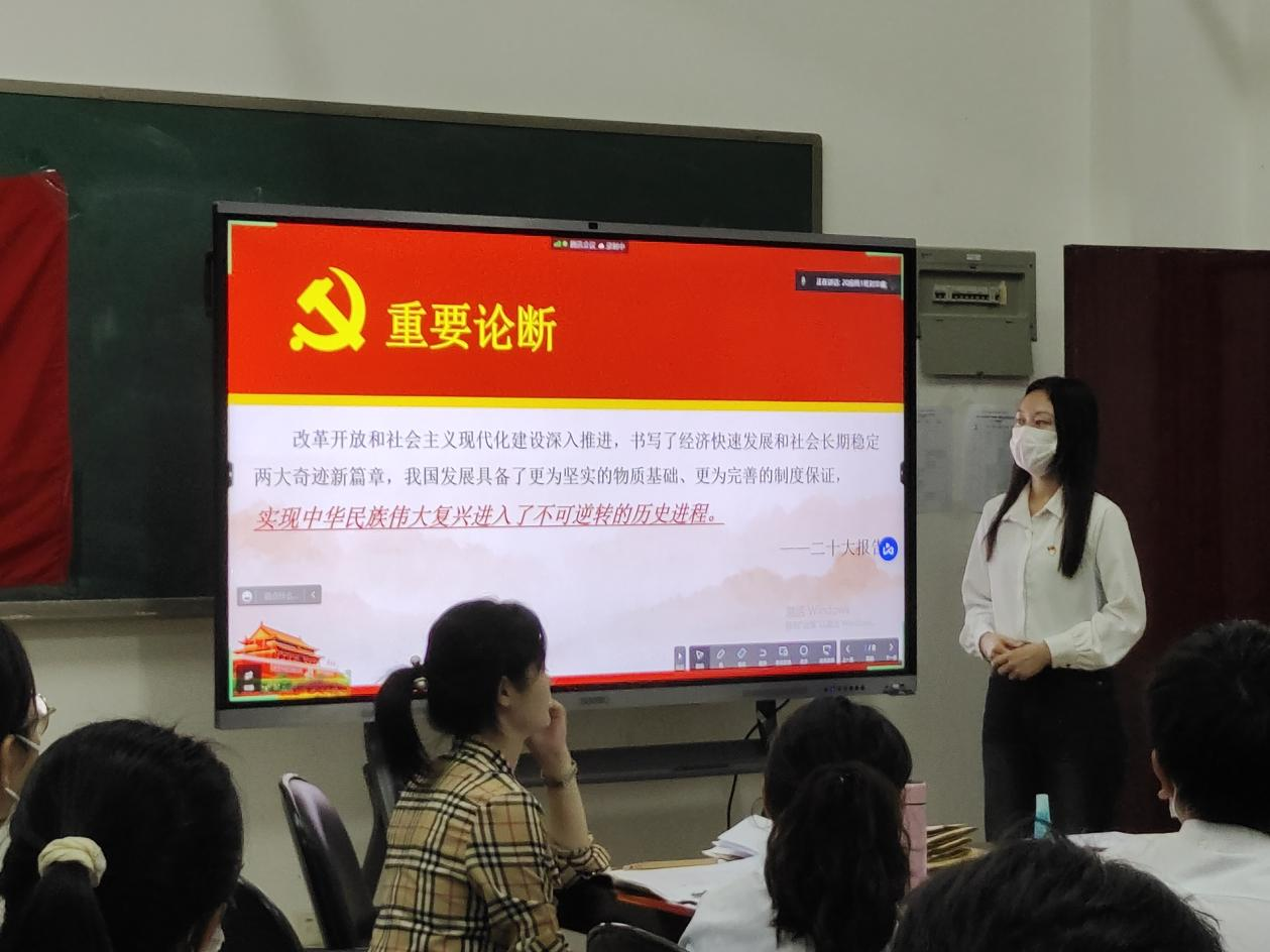 学生党支部书记王婷婷强调党员们务必深刻领会党的二十大精神,结合自身学习生活等方面进行学习,以党的二十大精神为指引,努力提升理论武装的高度,切实增强思想认识的深度,坚持学以致用,以实际行动带动广大学生增强学习党的二十大精神的积极性、主动性。