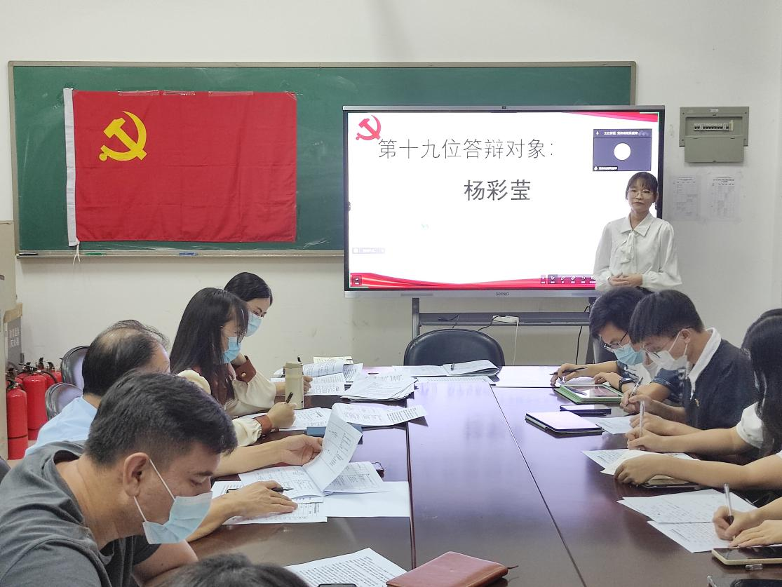 答辩结束后,许国良书记与王婷婷老师对本次答辩大会进行了点评。王婷婷老师充分肯定了各位同学的表现,同时也嘱托同学们应不断增加党史知识储备,认真深入理解党的理论知识,真正做到内化于心,积极投身社会实践,做到知行合一。许国良副书记则表示,本次答辩大会是一次供各位发展对象集中学习交流的好机会,促进大家相互交流,共同进步。希望各位拟发展对象把握学习机会,参与到社会实践中锻炼自己和提升能力,同时牢牢铭记自己的入党初心,勤奋努力,脚踏实地,认真提高自己的政治素质和党性修养,努力成为一名合格党员,更积极地向党组织靠拢。