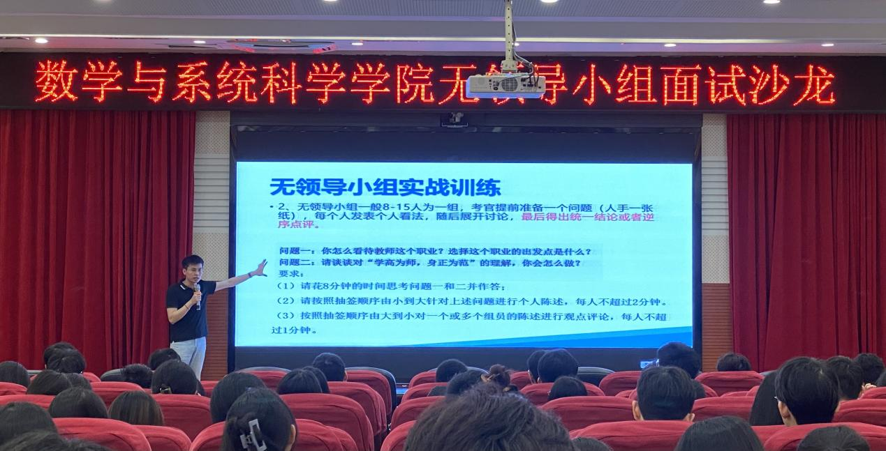 为进一步强化毕业生求职技能,营造良好求职就业氛围。4月6日,多多28在白云校区三教104举办无领导小组面试沙龙,19、20级数学师范专业学生现场参与。此次沙龙邀请了20级研究生邱彬彬做备考教师编制和无领导实战经验分享、辅导员曾祥龙做无领导小组面试解题逻辑和技巧分享,并现场进行了真题演练。