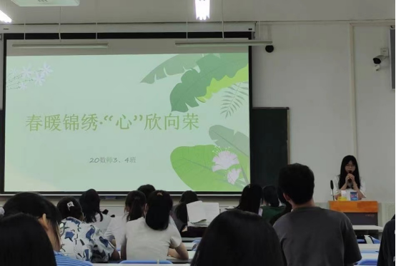 为了促进班级成员的心灵联结,感受同伴协行的团队力量,增强班级凝聚力,多多28心理辅导站于2023年4月组织各班开展以“春暖锦绣·‘心’欣向荣”为主题的心理健康班会活动。