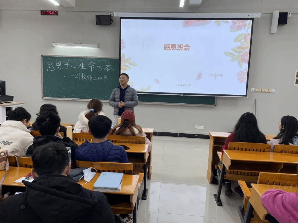 在班会上,各班邀请辅导员、班主任参加。会上,同学们通过回顾自己的成长历程,思考在学习和生活中所接受的帮助和支持,从而认识到感恩的重要性。同时,同学们就生命的意义和价值进行讨论,积极分享了自己对于感恩的心得和生命的感悟。