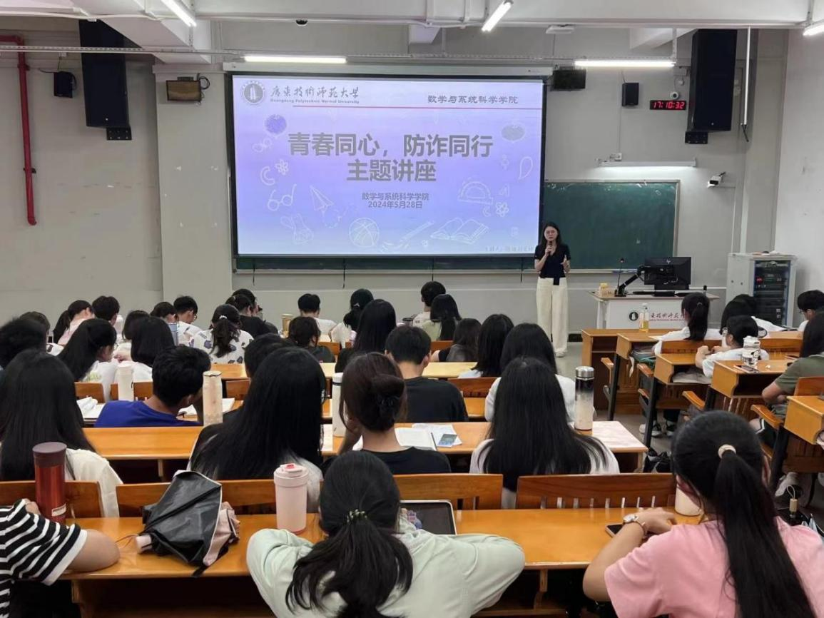 为了进一步提高学生对金融诈骗等诈骗行为的警觉性,增强对虚假信息的辨识能力,预防和减少金融诈骗现象的发生。多多28于2024年5月28日在白云校区三教101开展了以“青春同心,防诈同行”为主题的金融防诈骗宣讲会,会议由辅导员陈薇羽组织并主持。